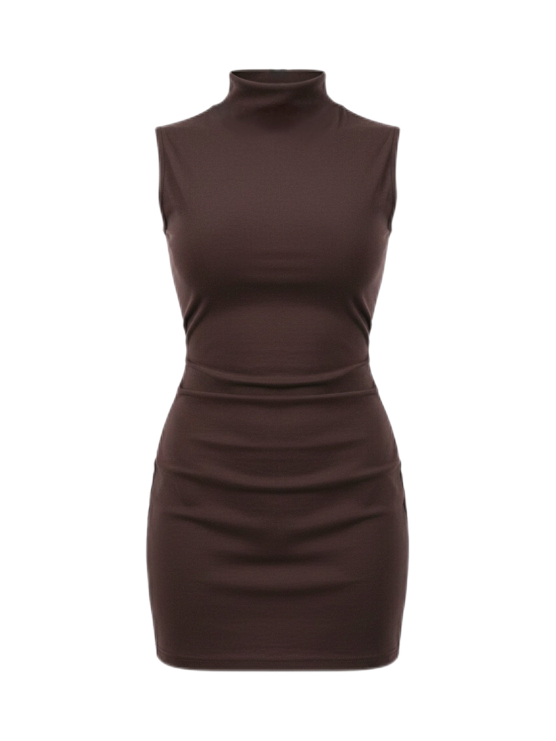 A study in perfect silhouette. This sleeveless mini-dress features a sleek mock neckline and is engineered with full-body ruching and gathering, focusing on the waist and hips to create an instantly snatched and defined figure. The premium stretch fabric ensures both comfort and a flawless fit.